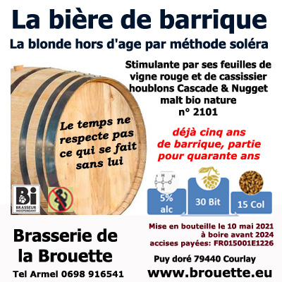 Une petite vivacité en plus des feuilles de vigne rouge et de cassissier (pour les jambes lourdes) c'est la Bière à la Barrique vieillie en fut de chêne.